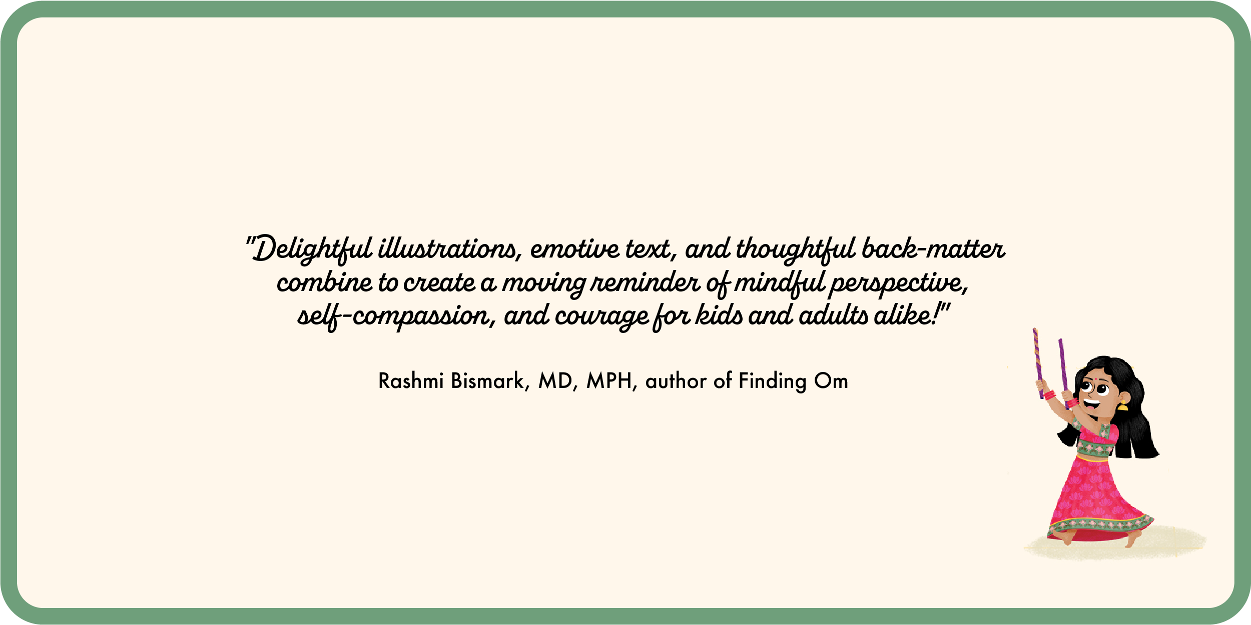 This heartwarming debut picture book celebrates the power of belonging and finding inner strength while introducing young readers to Navratri, a vibrant fall festival celebrated throughout the Indian diaspora.
